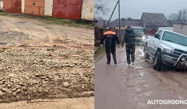 Улица Гагарина находится неподалеку от Сов.Пограничников в Гродно. Там есть гаражный кооператив, дорога мимо которого сегодня стала западней для многих автомобилей. UPD: строительная фирма подсыпала обочину.