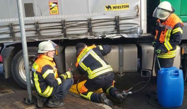 В Нижней Саксонии польский грузовик с 53-летним белорусом за рулем попал в ДТП, из-за чего на дорогу вылилось большое количество топлива.