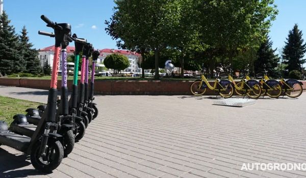 В разных точках Гродно можно найти желтые электросамокаты, предусмотренные для аренды.