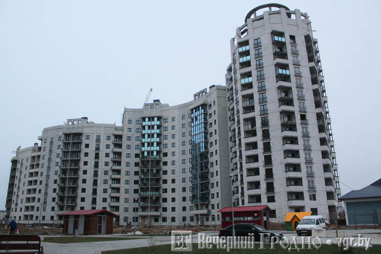 Сами же новые дома выделяются необычной, непривычной для Гродно архитектурой с большим количеством остекления.