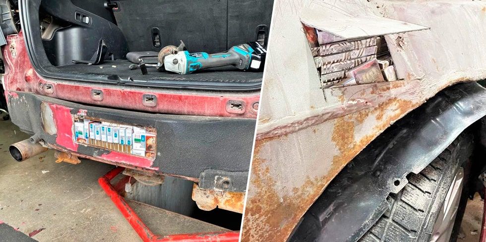 В различных полостях кузова Mazda пограничники обнаружили тайники для сигарет.