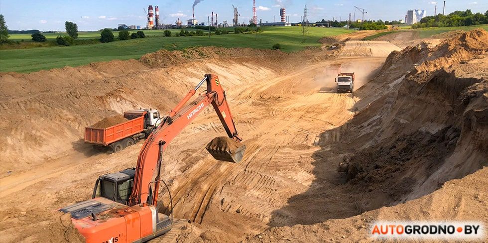 В середине апреля 2023 началось строительство нового участка дороги между АЗОТом и Озерским шоссе. Сейчас там активно работают специалисты и техника "Гроднооблавтотранса" – вывозят грунт, на месте которого появится проезжая часть.