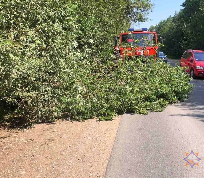 Спасателям Гродненщины поступило 12 сообщений о падении аварийных деревьев на проезжую часть автодорог в Волковысском, Зельвенском и Кореличском районах.