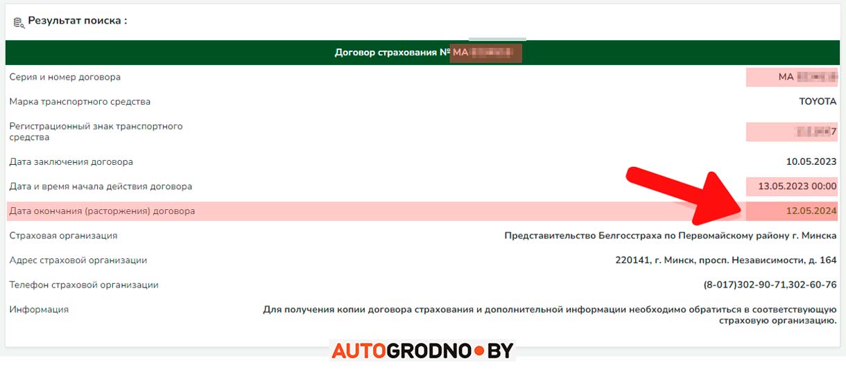 Чтобы проверить срок действия страховки (и вообще ее наличие) не нужно звонить в страховую, можно даже не искать договор страхования. Белорусское бюро по транспортному страхованию еще с 2018 года оказывает бесплатную услугу по предоставлению таких данных онлайн.