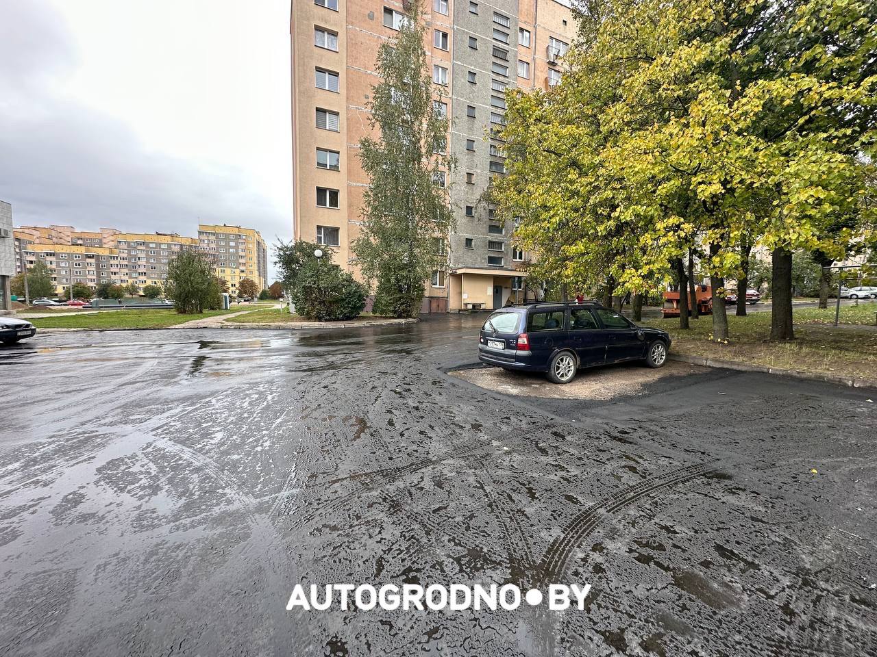 Дело в том, что вчера, 11 октября, туда приехали дорожники. В планах – долгожданное для всех жителей сплошное асфальтирование. Но все пошло немного не так. Всему причиной – припаркованный уже давно Opel на российской регистрации. С места его не убрали и поэтому асфальт положили ровненько вокруг машины.