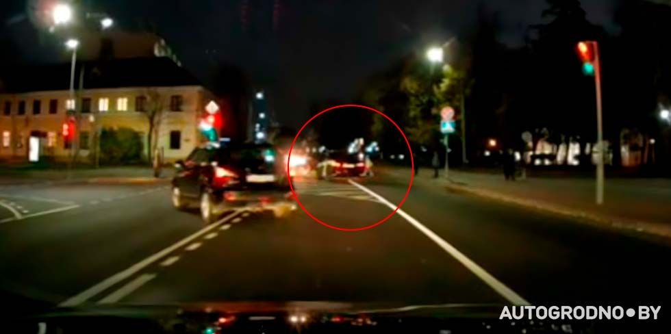 Обновлено. Очередной опасный маневр заснял видеорегистратор в Гродно. На этот раз водитель такси проскочил на красный и чудом сумел объехать человека, который уверенно шел по пешеходному переходу.