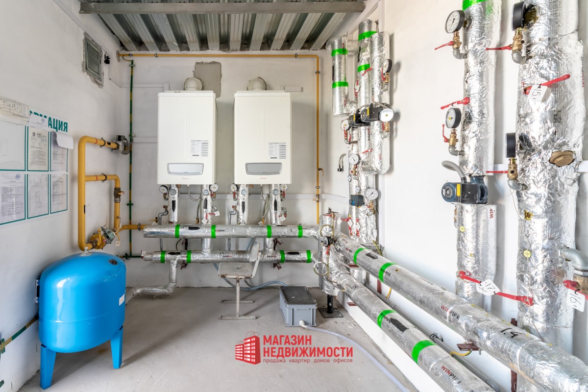 Пишут, что помещения отапливаются с помощью общего котла, работающего на газу, а также с помощью воздушной вентиляции.