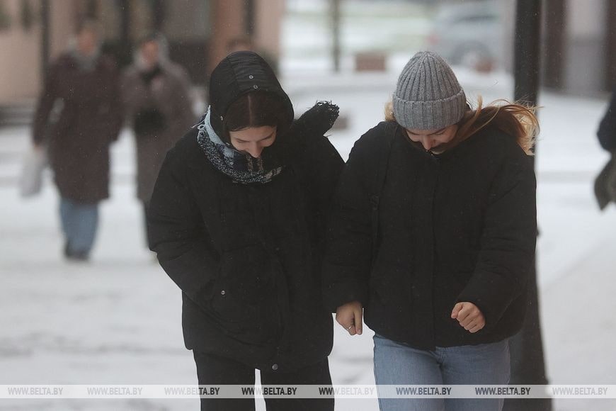 Напоминаем, мокрый снег и порывистый ветер принес циклон в Беларусь. Во многих районах ожидаются сильный снег, метель, а по западу на большей части территории гололед. На отдельных участках дорог сохранится гололедица. Ветер юго-западный, сильный порывистый.