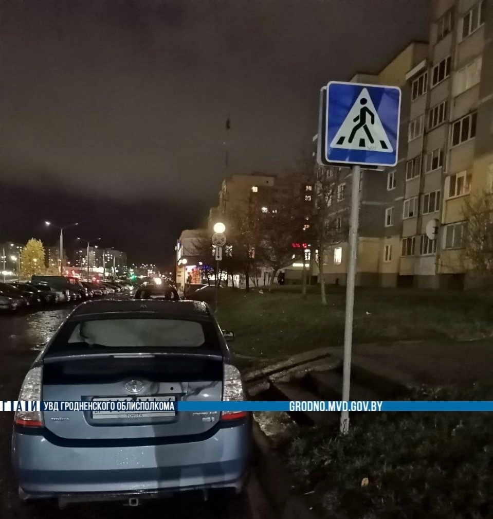 Так в пятницу, 24 ноября, жительница Гродно припарковала свой Toyota Prius в микрорайоне Фолюш напротив выхода из арки одного из домов, а точнее – на пешеходном переходе.