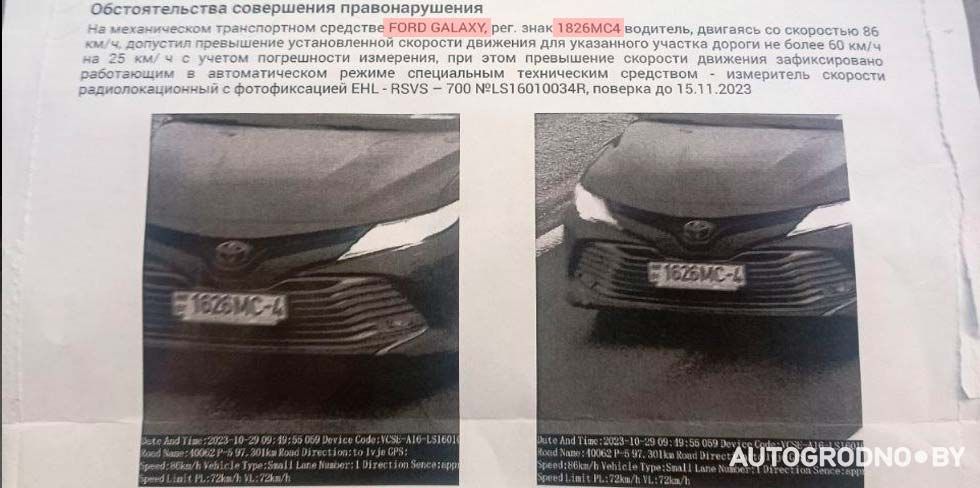 А автомобиль, на котором совершено нарушение, – Ford Galaxy 1826 МС-4. Дата и время – 29 октября в 9:49.