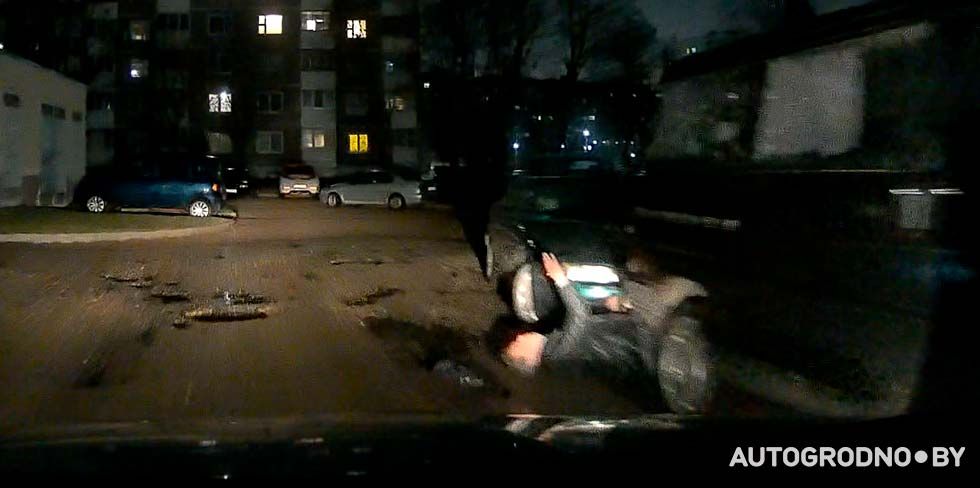"От ям во дворах тоже есть польза": гродненец показал, как к нему под машину вывалился пьяный мужчина, но из-за выбоин они разминулись