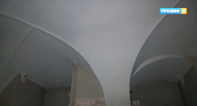 – Благородный этаж, так называемый «Piano Nobile». Там именно располагались основные представительские и королевские помещения, там вот были королевская спальня, кабинет его, приемная его. Там была столовая изба, это все было на втором этаже. Их планировка для нас на сегодняшний день только абсолютно понятна и кое-где, допустим, вот в проходе, в арке в королевской спальне, тоже есть остатки штукатурки с фресками.