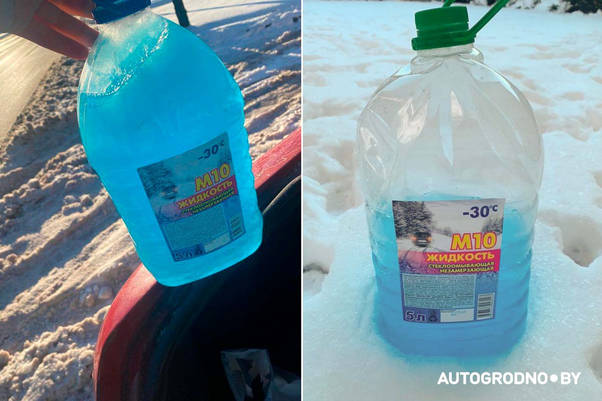 Сразу несколько водителей прислали фотографии незамерзайки "М10" -30°C. У тех, у кого была залита эта незамерзайка, омыватели сегодня не работали. Даже в банках, где жидкость замерзает в последнюю очередь, все равно был лед.