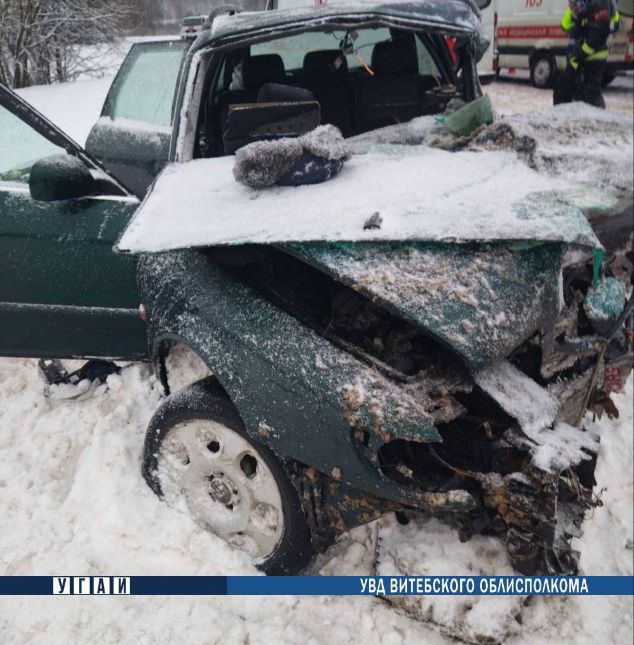 На закруглении дороги вправо произошло столкновение тягача Skania с автомобилем Audi, который двигался со стороны Полоцка в направлении городского поселка Ветрино.