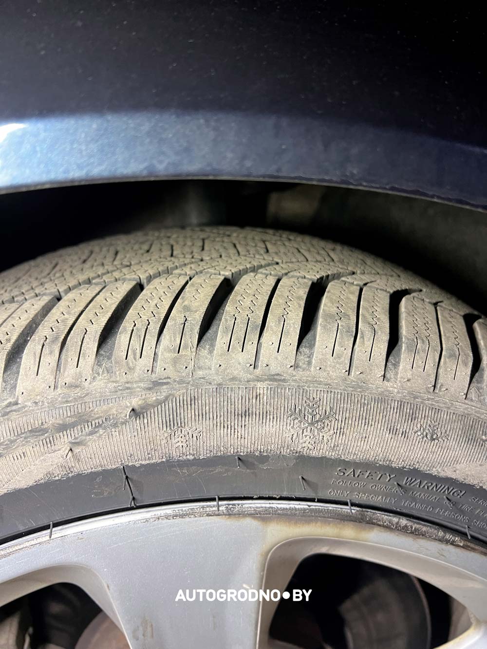 Вчера вечером, 16 февраля, читатель АвтоГродно Стас ехал по привычной для себя дороге, как вдруг почувствовал, что колесо "стало жевать". Оказалось, порвал на яме. Самое неприятное, что эту шину он купил лишь 2 недели назад. Мужчина предупреждает других водителей.