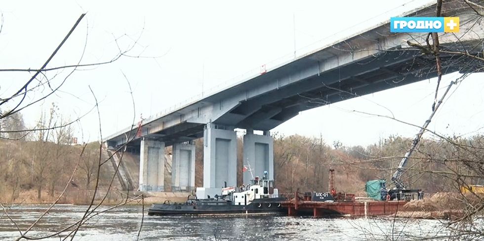 Отделка нижней части Румлевского моста в Гродно продолжается. Это второй этап работ, который продолжил капитальный ремонт перехода.