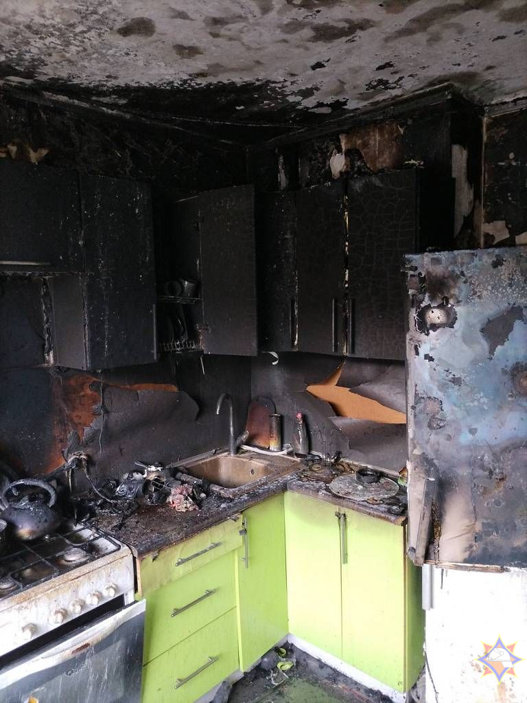 В считанные минуты работники МЧС ликвидировали пожар. Огнем уничтожено окно на кухне, мебель, повреждено имущество, закопчены стены и потолок в квартире.