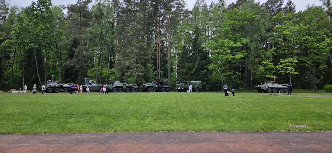 На следующий день, 10 мая, участников пробега пригласили в комплекс "Озерный", где военные выставили технику, показывали свое оборудование и даже с помощью дрона скидывали с неба для детей конфеты: