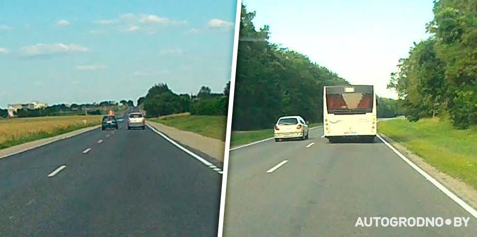 В прошедшую пятницу читатель АвтоГродно двигался по дороге из Гродно в сторону Озер. С разницей в неполные 10 минут он стал очевидцем двух опасных и одинаковых дорожных ситуаций: водители автомобилей Renault и Fiat решились на опасные обгоны, не глядя на встречные автомобили.