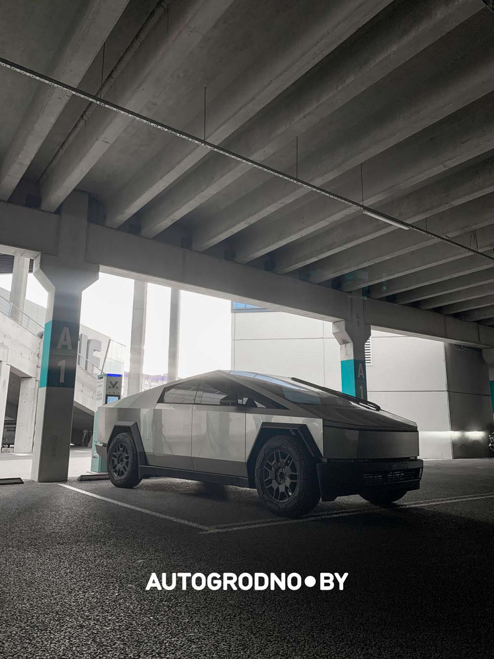 Напомним, впервые нашумевший электропикап от Илона Маска был замечен в Гродно в конце апреля 2024. Тогда его привезли на лафете, зарядили у станции на парковке Old City и увезли в сторону Минска/Москвы. 3 июля Cybertruck появился у зарядных станций на парковке ТРК Triniti.