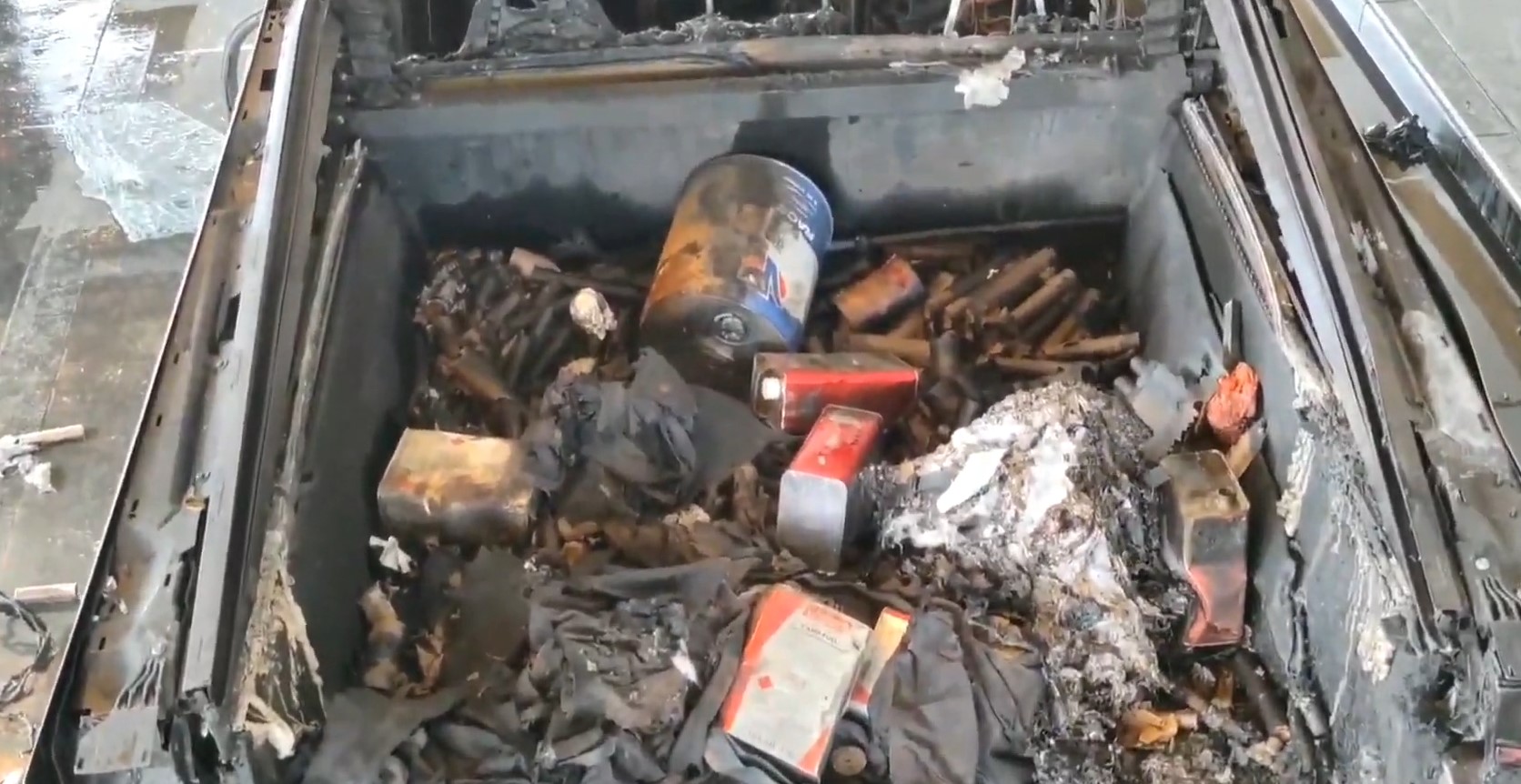 "Это канистры с бензином. Это канистры с топливом для лагеря и большие пиротехнические мортиры ... Тот факт, что это был кибертрак, действительно ограничил ущерб, потому что большая часть взрыва прошла через крышу грузовика. На этом видео вы увидите, что входные стеклянные двери в отеле Trump даже не были разбиты этим взрывом," – заявил шериф на пресс-конференции.