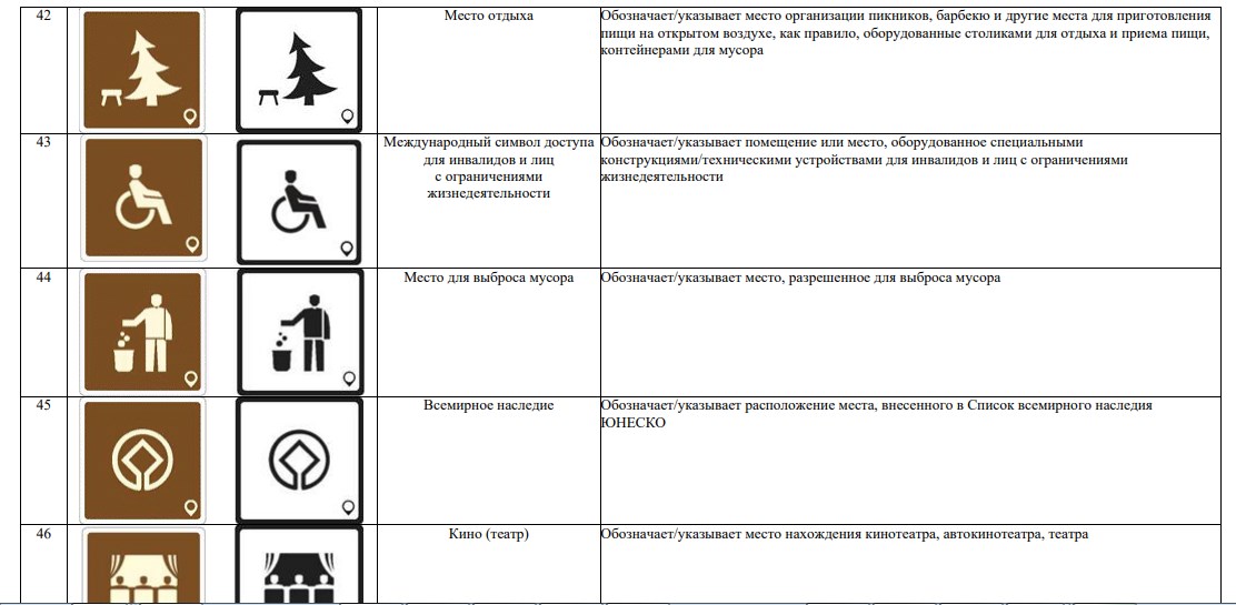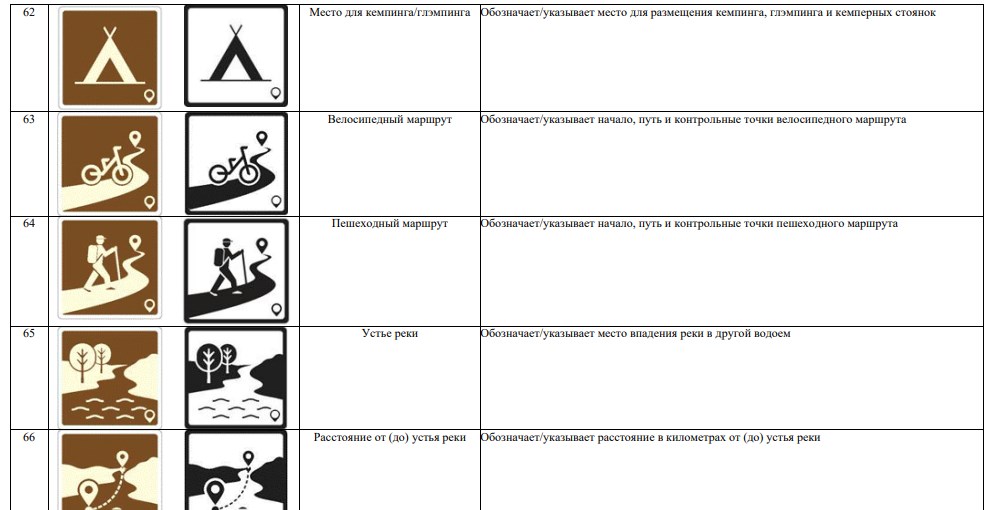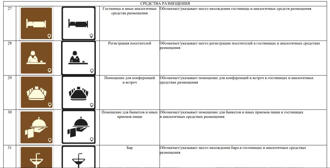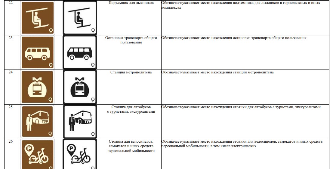 В новой системе значатся 70 символов. Они используются для обозначения объектов туристической индустрии (агроэкотуризм, активный туризм, гастрономический туризм), транспорта (автовокзал, аэропорт, каршеринг) и так далее.