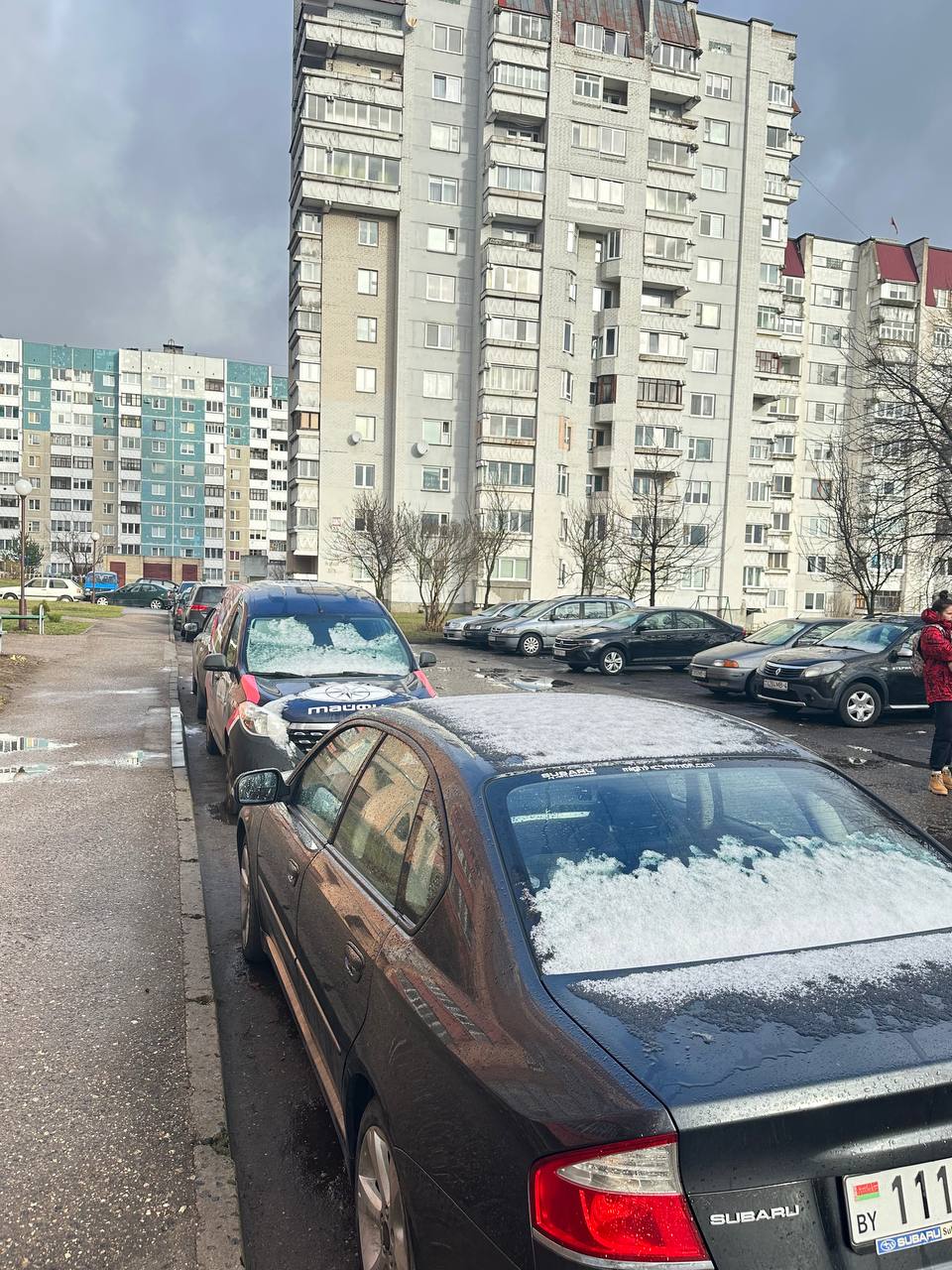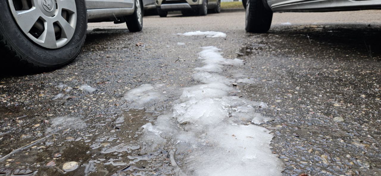 Остатки ночного снега можно лишь наблюдать на легковых автомобилях: