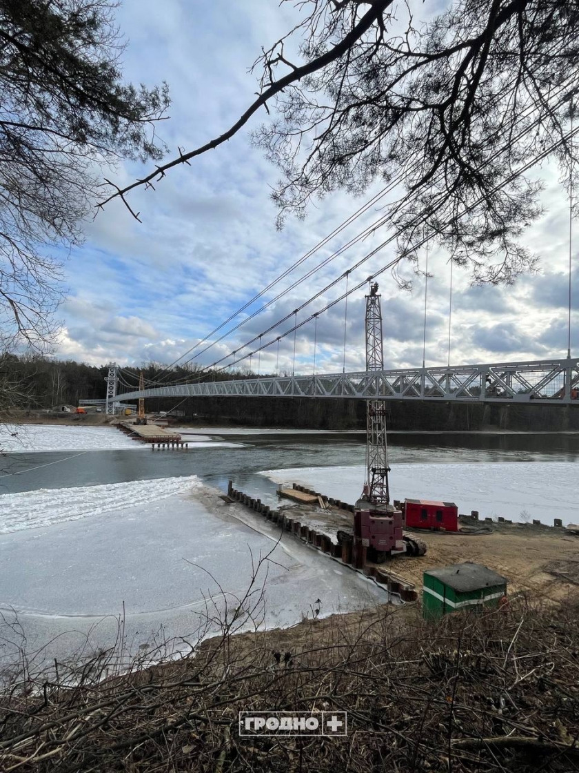 Строительство самого длинного подвесного моста в Беларуси на финишной прямой