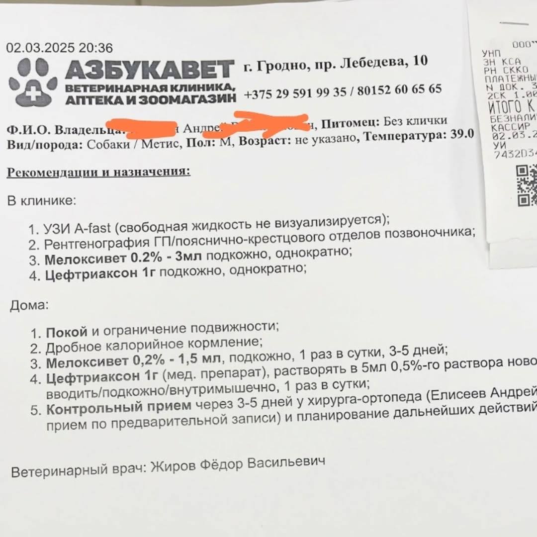 Отдельное спасибо Рите из САХ и @animalsgrodno, взявших на себя все последующие расходы за лечение и операцию Арчи.