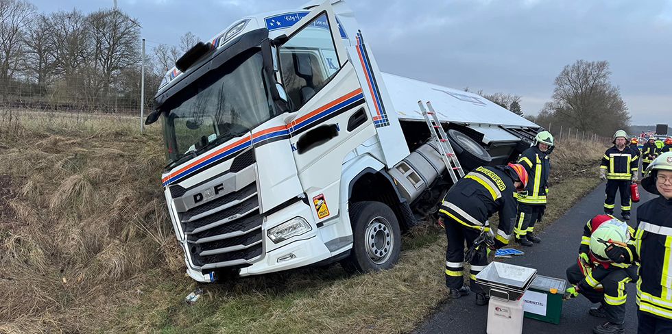 Фура двигалась в направлении Берлина по правой полосе. Между развязками Путлиц и Майенбург съехала вправо и опрокинулась на бок в кювет.