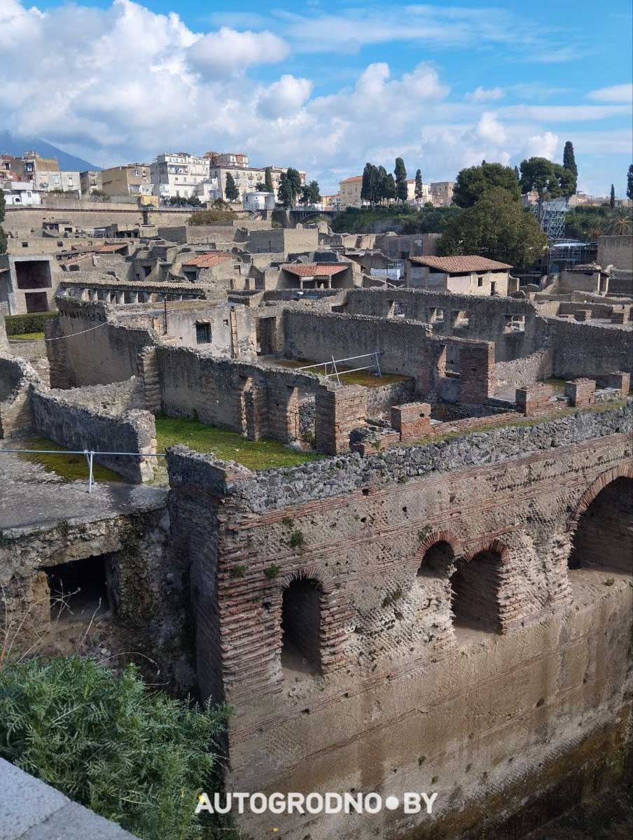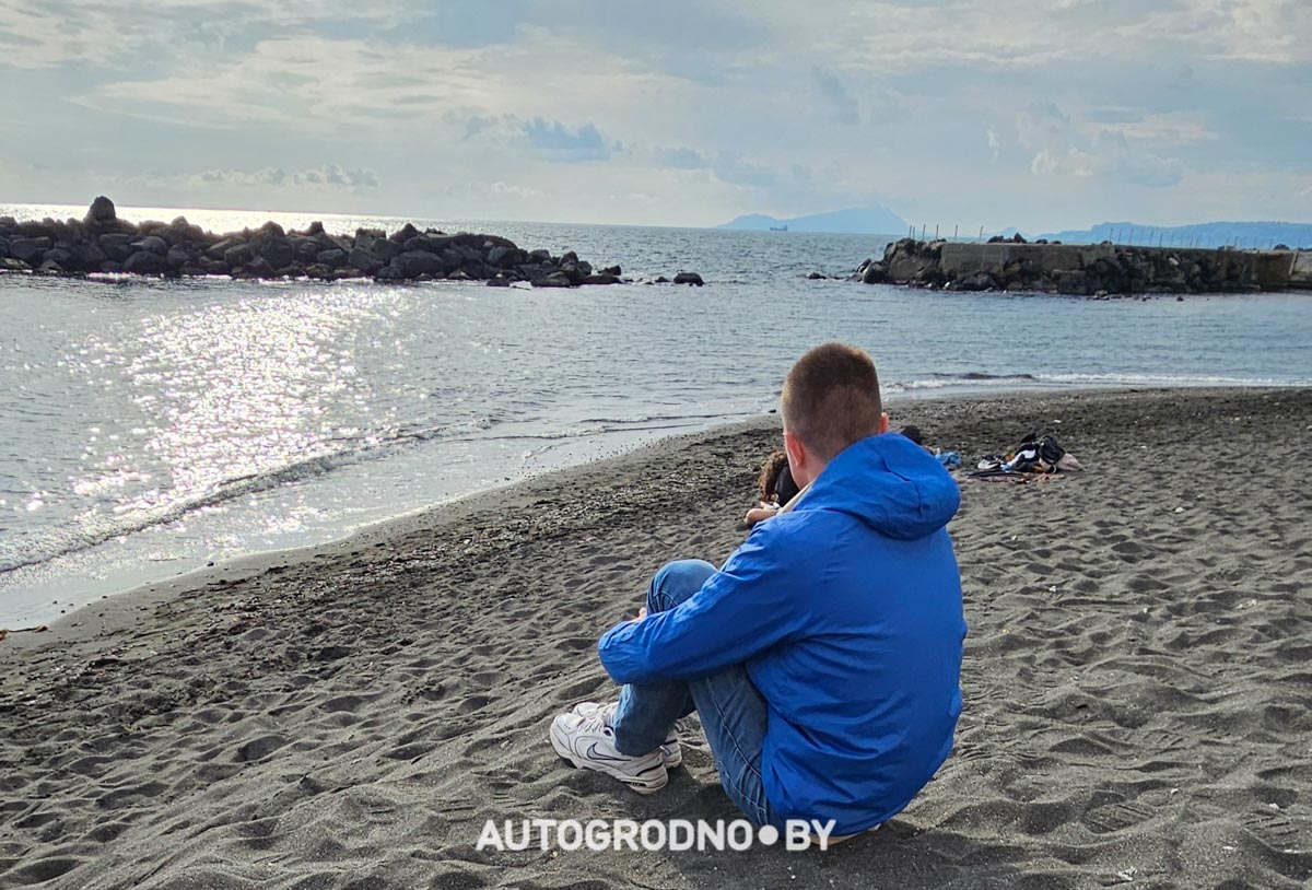 Городок оказался уютным и интересным: кроме руин старинной части города, пострадавшей от извержения вулкана, можно было спуститься к приятному пляжу с черным песком вулканического происхождения. Было здорово погреться на солнышке после пронизывающего и влажного ветра горных склонов в ожидании обратного транспорта до Неаполя.