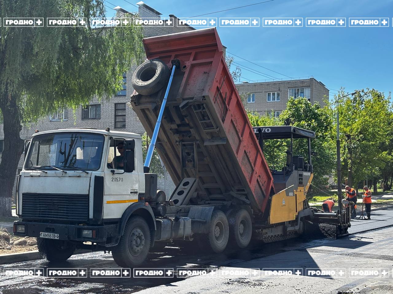 Сотрудники "Ремстройавтодоа" сняли старое покрытие, на его месте в два этапа укладывают новый асфальт, сообщает телеканал "Гродно Плюс".