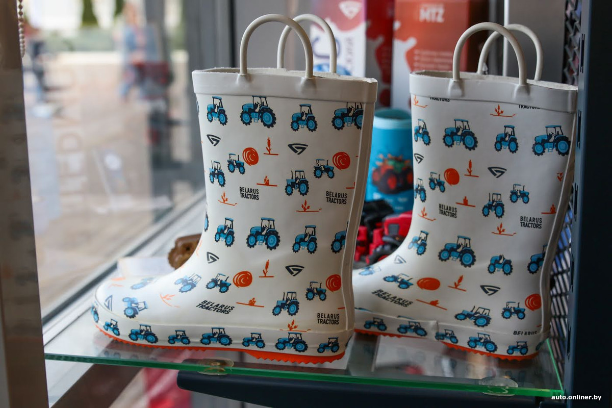 Есть топор-колун за 132 рубля, а еще часы, резиновые сапоги, майки, рюкзаки, модели тракторов и другой фирменный мерч предприятия.