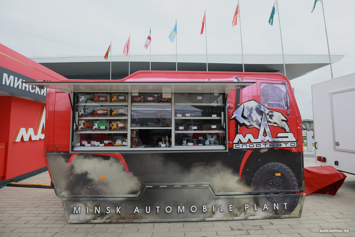 — Это новая разработка, пока это первый экземпляр, — рассказали на стенде МАЗа. — Таких машин ещё не было. Мы уверены, что она пойдёт в серию и будет продаваться.