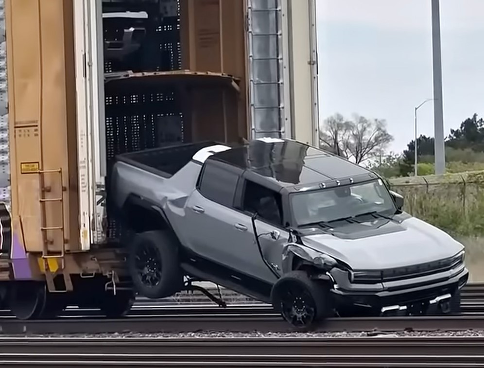 Двое воров хотели как в фильмах угнать Hummer EV из поезда, но не учли законы физики