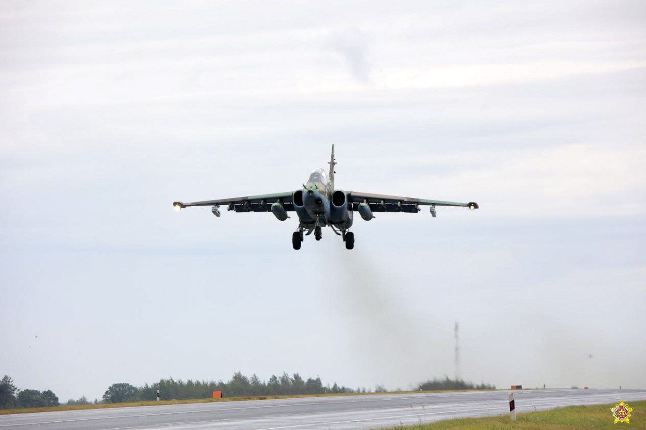 Самолеты Су-25 осуществляют посадку на аэродромный участок дороги трассы М1.