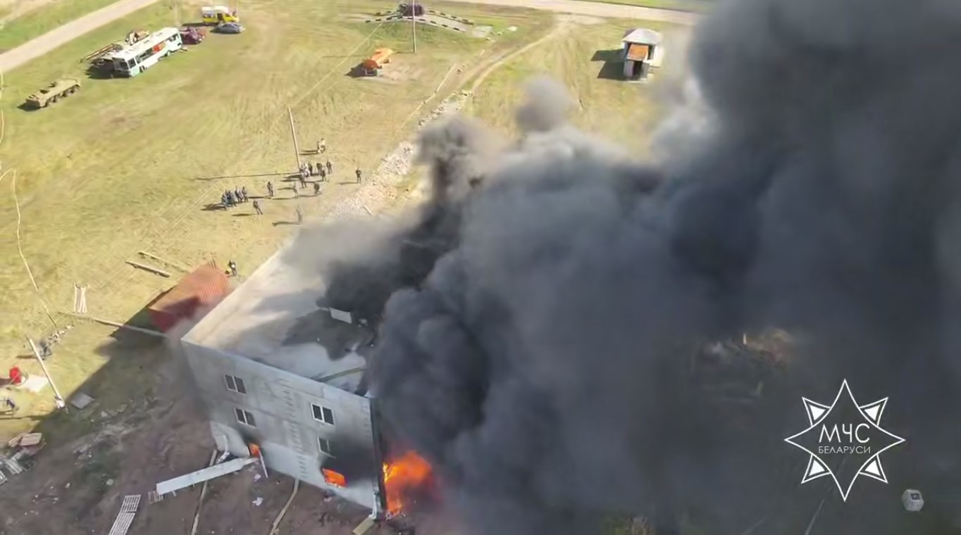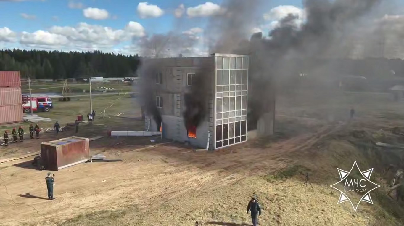 На полигоне под Борисовом специалисты МЧС и Минстройархитектуры смоделировали реальные сценарии выхода пламени из окон и воздействия высоких температур на различные фасадные системы.