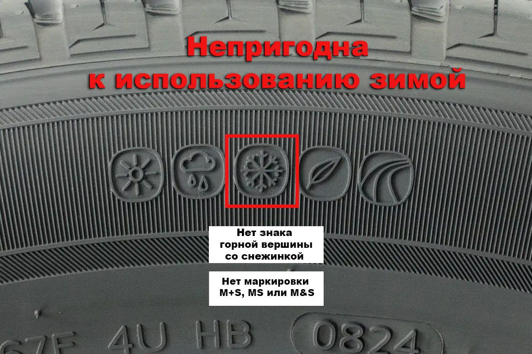Только если на маркировке нанесены оба знака, такие шины считаются зимними, в том числе при наличии любых дополнительных обозначений (+All Season; Road + Winter (R+W); Any Weather и др.).