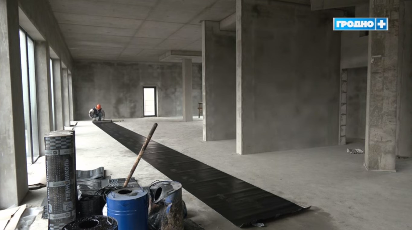 На сегодняшний день выполнили все работы по созданию конструкции здания, остекление, а также все кровельные работы, рассказывает телеканал "Гродно Плюс".