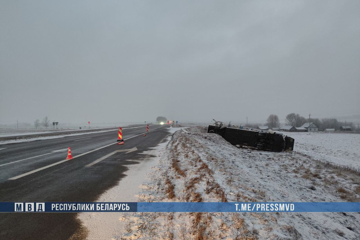 По предварительной информации, 43-летний водитель, который ехал со стороны Минска, не справился с управлением. Автобус съехал в правый по ходу движения кювет и опрокинулся, пишет Onliner.