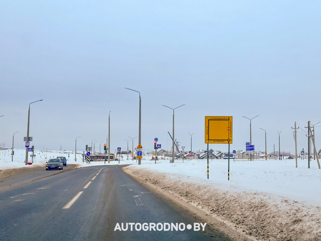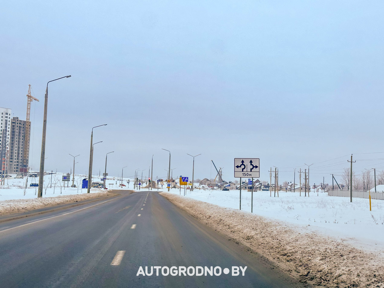 У выезда из Гродно в сторону Поречья оставили стандартные знаки, указывающие направление движение по полосам.