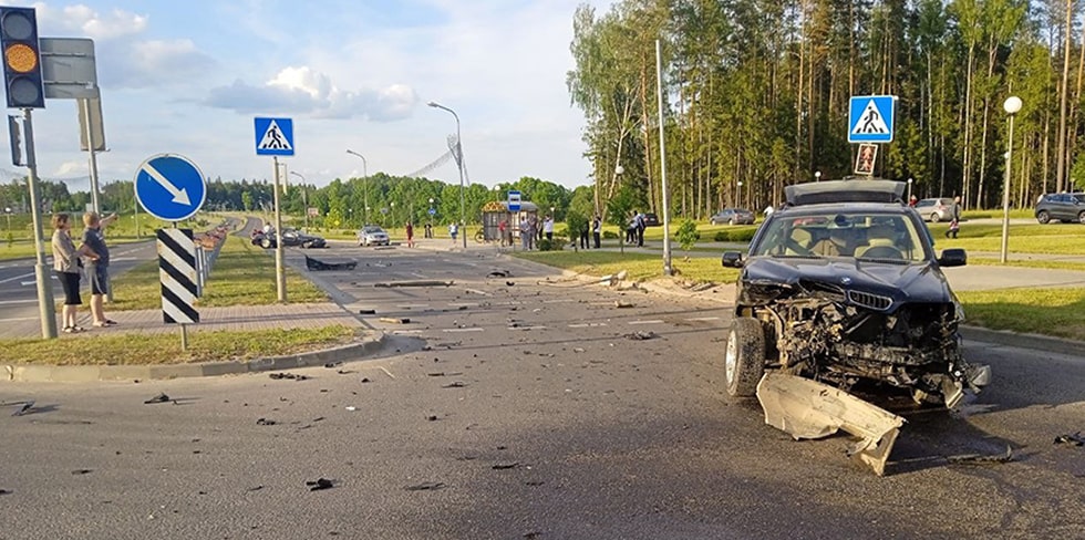 Это точно BMW? Посмотрите, что стало с 2 баварцами после жесткого ДТП в Островце. Видео удара
