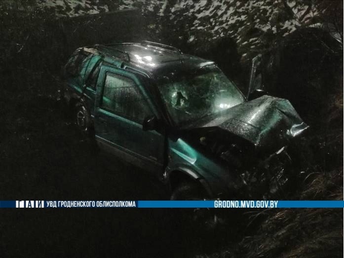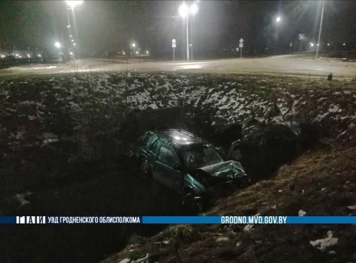Видео: в Мостах водитель отправил свою машину в глубокую канаву. Он и пассажирка в больнице