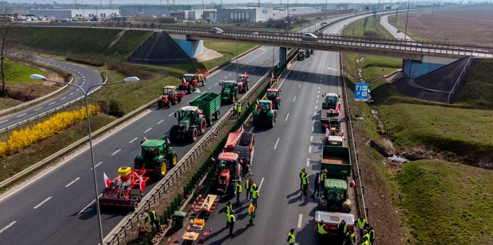 С помощью тракторов фермеры перекрыли около 500 участков дорог по всей Польше. В том числе и одно из направлений трассы S8, в обратном же направлении движение транспорта сохранялось.