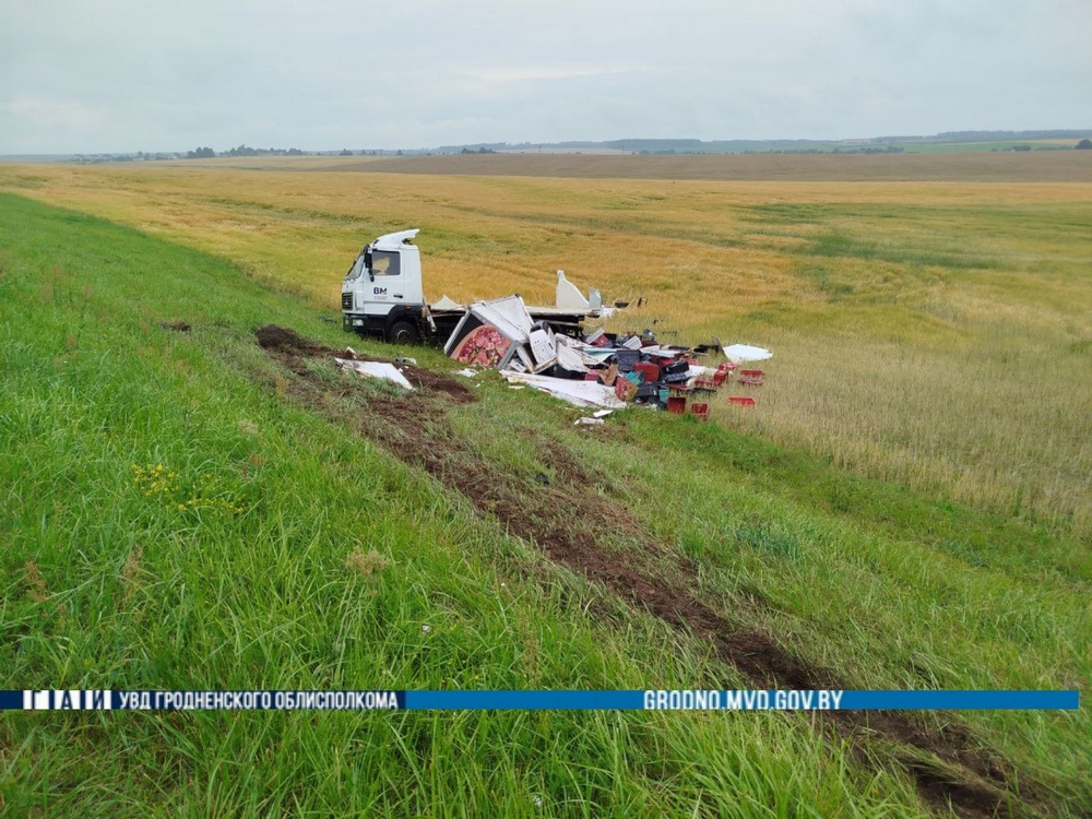 Под Зельвой водитель грузовика неаккуратно выехал на обгон и, когда возвращался, слетел в кювет