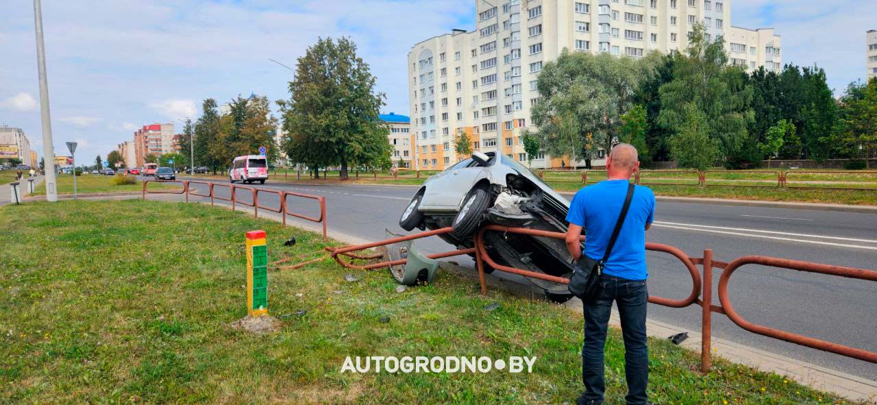 Во время этого маневра легковой автомобиль снес два пролета ограждения.