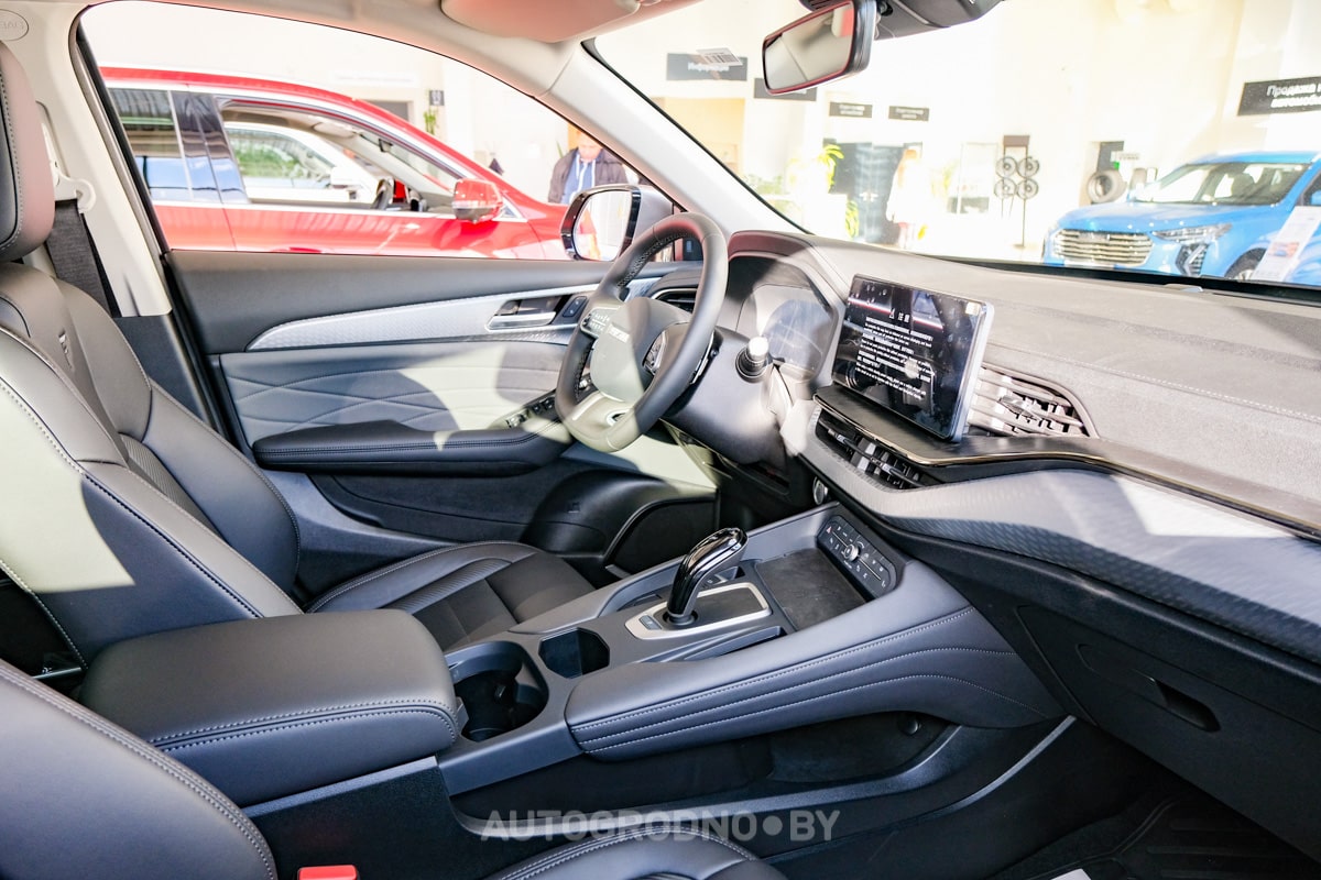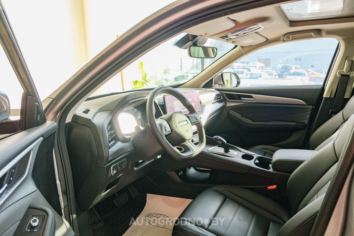 У Jolion три комплектации. И в более старших добавляется еще больше функций. Например, тонированные задние стекла, светодиодные фары, подогрев и регулировка сидений, подогрев руля, электро-складывание зеркал, 2-зонный климат, подрулевые лепестки переключения передач для роботизированной коробки, датчики парковки спереди и сзади, камеры заднего и кругового обзора, проекционный дисплей.