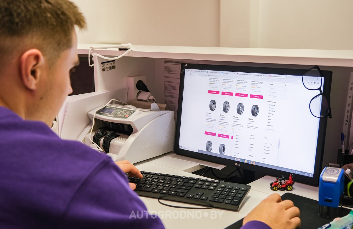 Пока мы общаемся, Максим делает отметки в компьютерной системе 21vek.by о том, что за шинами пришел покупатель. Статус шин автоматически сменится и в личном кабинете пользователя.
