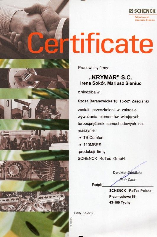 Сотрудники представительства Крымар в Гродно оперативно диагностируют причину выхода турбины из строя, взамен предоставляют точно такую же, но исправленную, а испорченную турбину отправляют на ремонт в Польшу, официальную мастерскую Krymar.