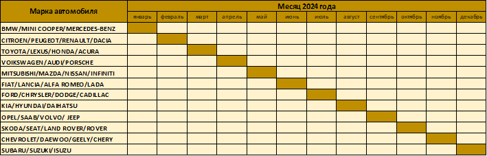 - автомобили марки Мерседес Бенц и БМВ.2. ТО (техническое обслуживание) автомобилей (гарантия – 30 дней):